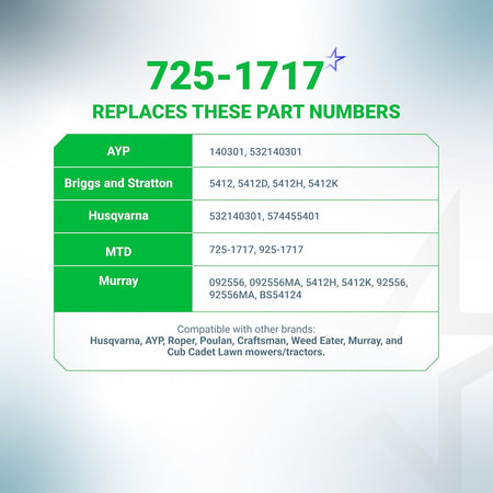 - Fits various models from brands including MTD, Craftsman, Husqvarna, Murray, and AYP.