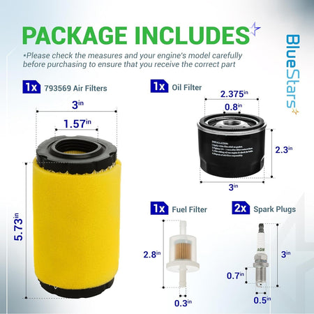 Air Filter 793569, 793685; Oil Filter 696854, 492932