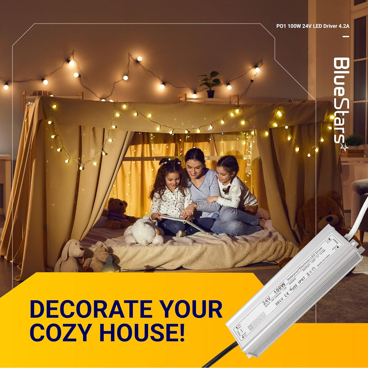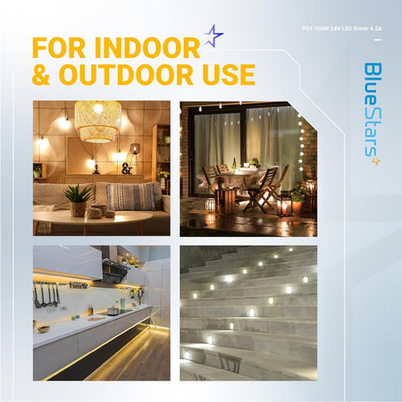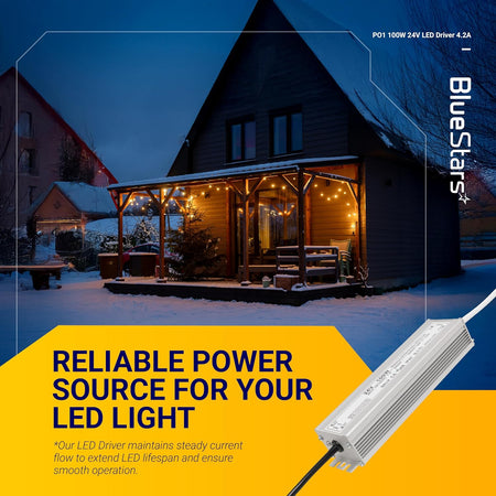 The BlueStars 100W 24V LED power supply driver is a high-performance constant voltage transformer designed to deliver stable, flicker-free power for LED lighting systems. With a wide input voltage range and IP67 waterproof protection, it is ideal for both indoor and outdoor LED applications.