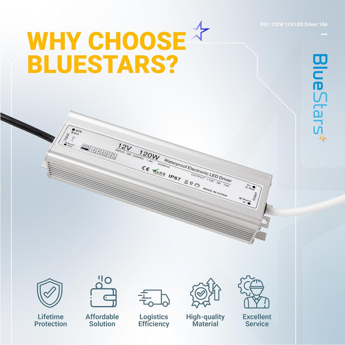 120W 12V LED Power Supply Driver 10A AC 100-260V to 12V DC Transformer IP67 Waterproof