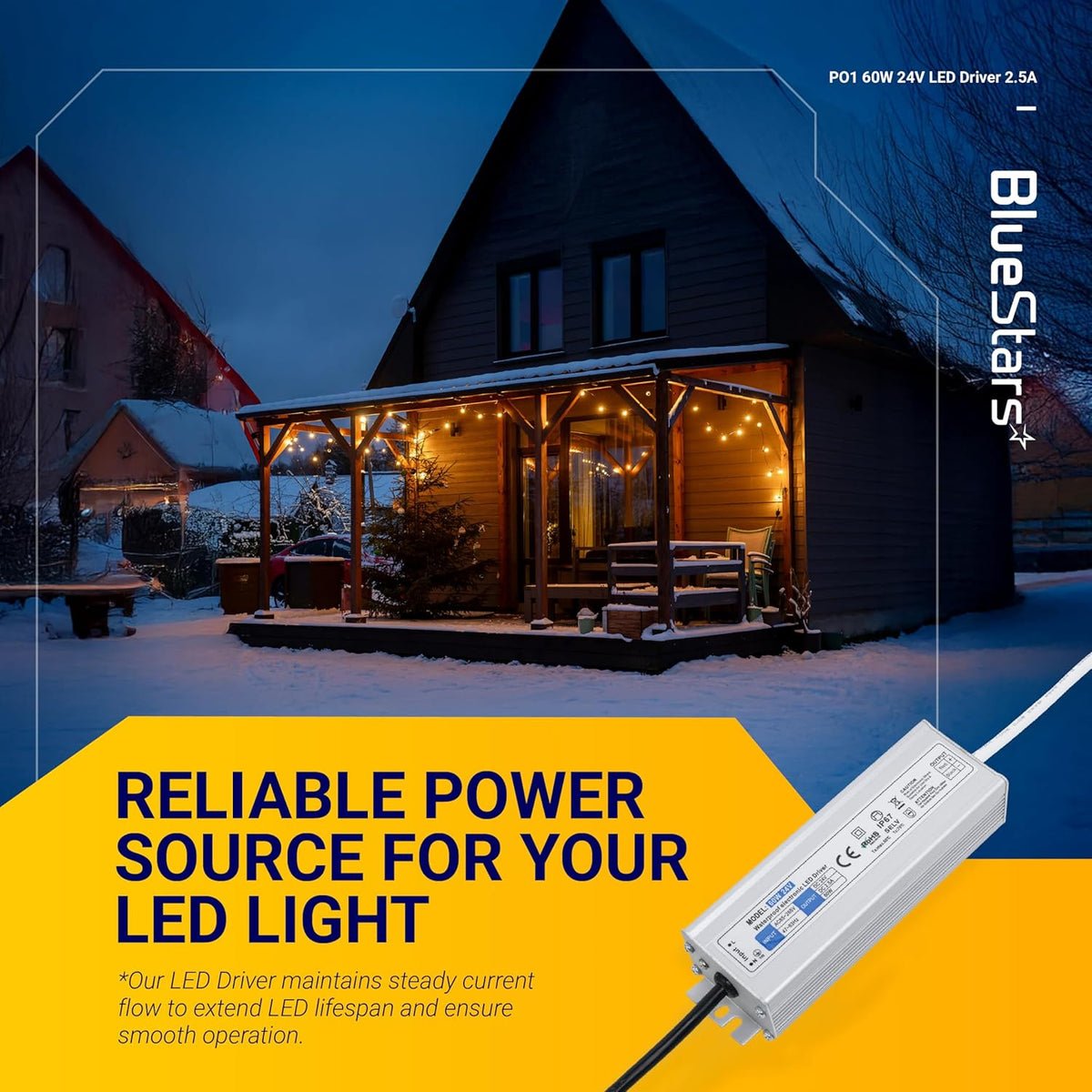 The LED Power Supply Driver features advanced circuitry that delivers a steady 24V output, ensuring your LEDs operate smoothly. Eliminate flickering, color distortion, and early burnout for reliable, high-performance lighting.