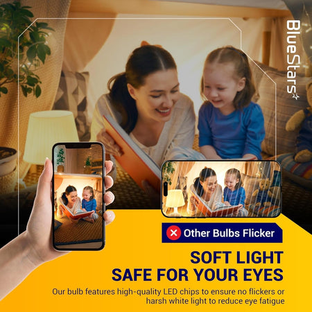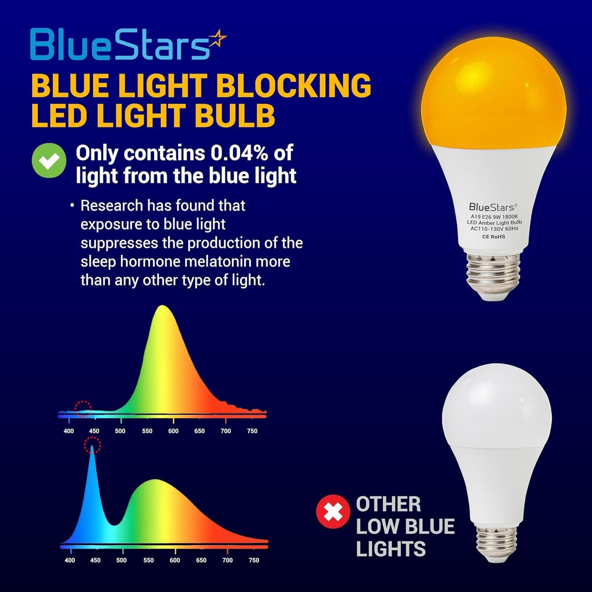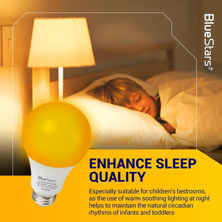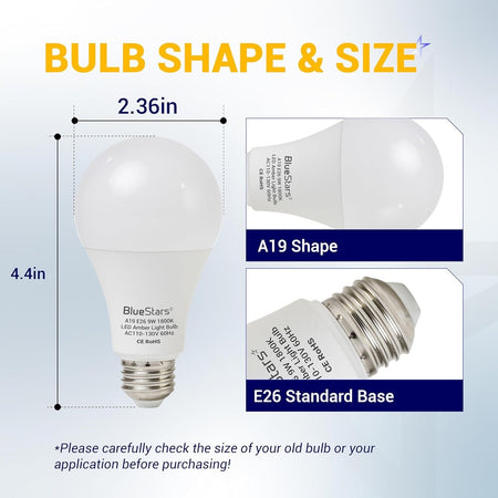 [Lifetime Warranty] Amber Sleep Light Bulbs Blue Light Blocking A19 9W (60 Watt Equivalent) 1800K Warm Lighting with E26 Base - Pack of 4