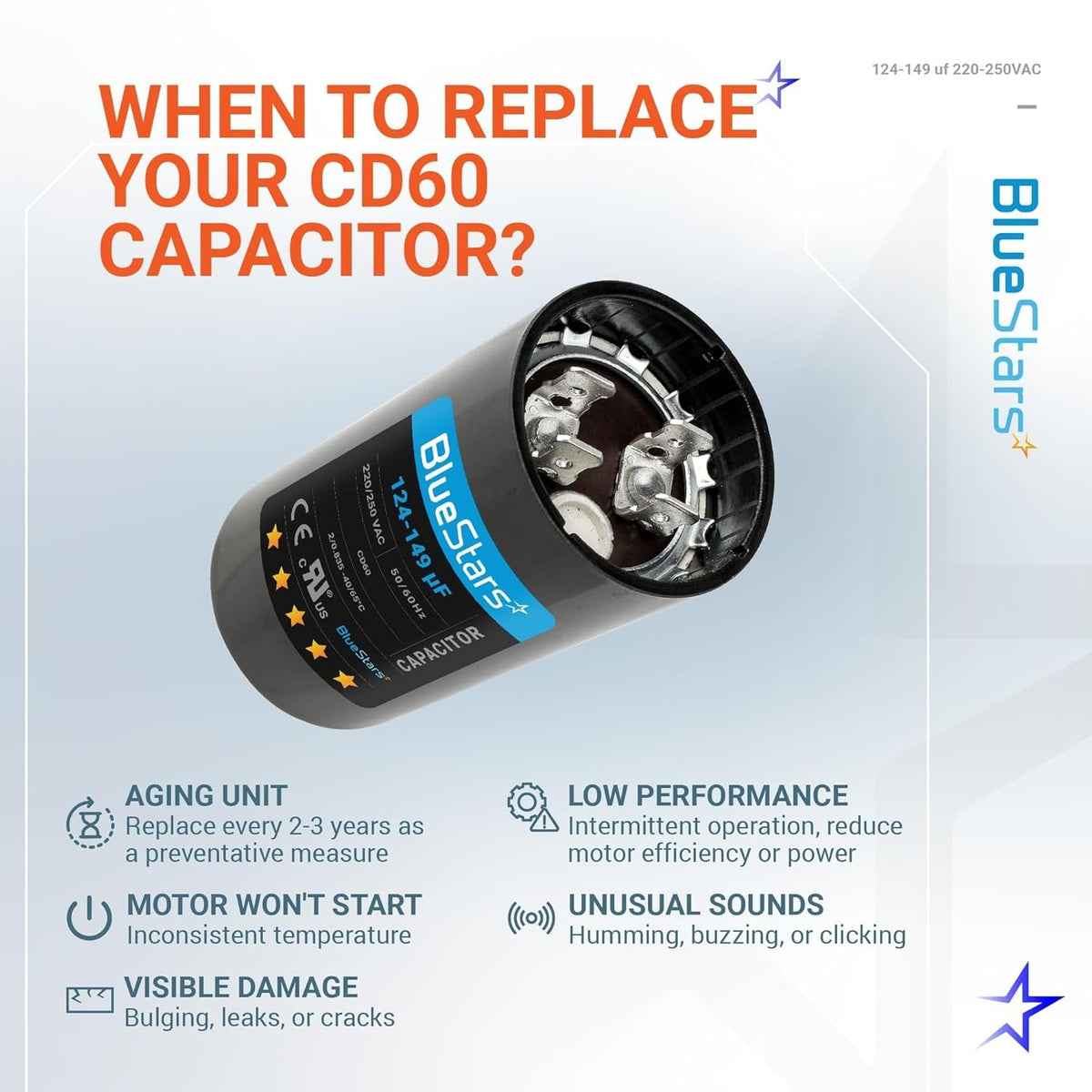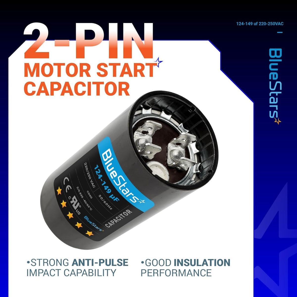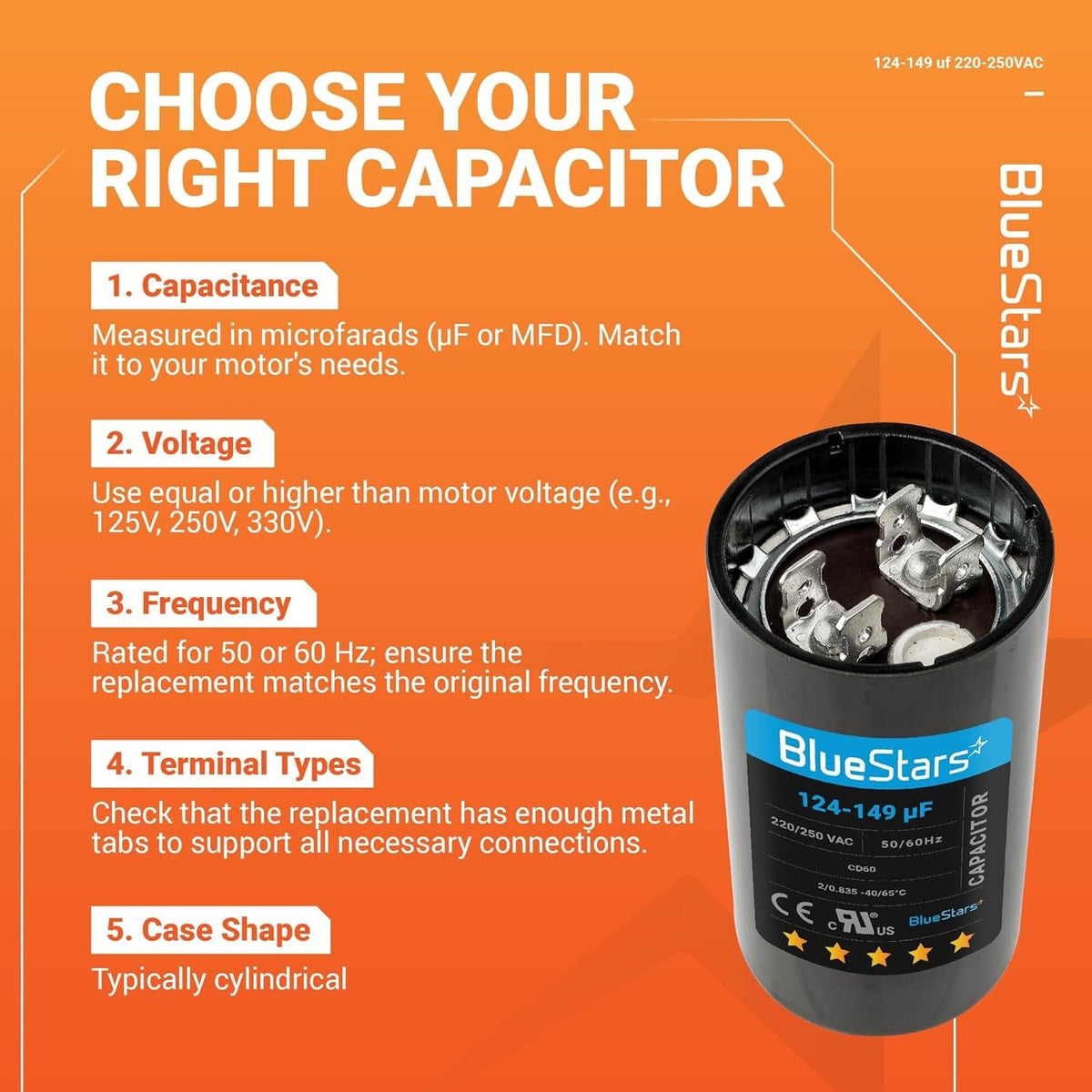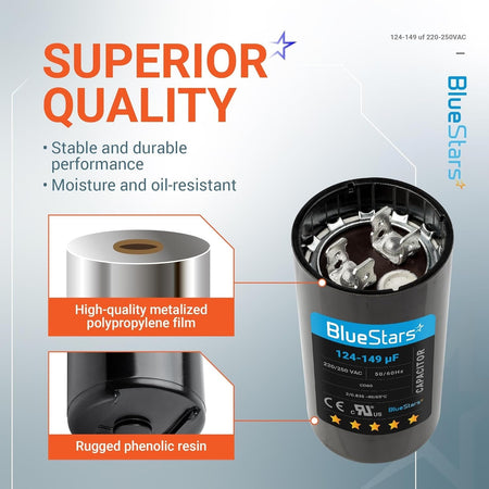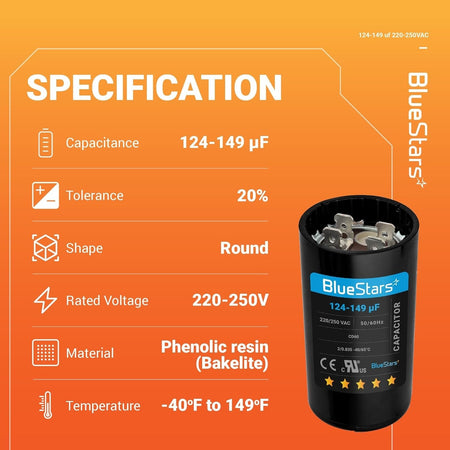 - Capacitance Range: 124-149 microfarads (µF/MFD)
