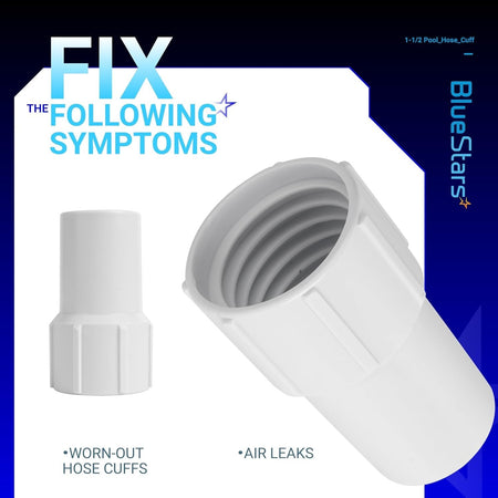 - Fits standard 1-1/2 inch (1.5") diameter spiral-wound or wire-reinforced swimming pool vacuum hoses.