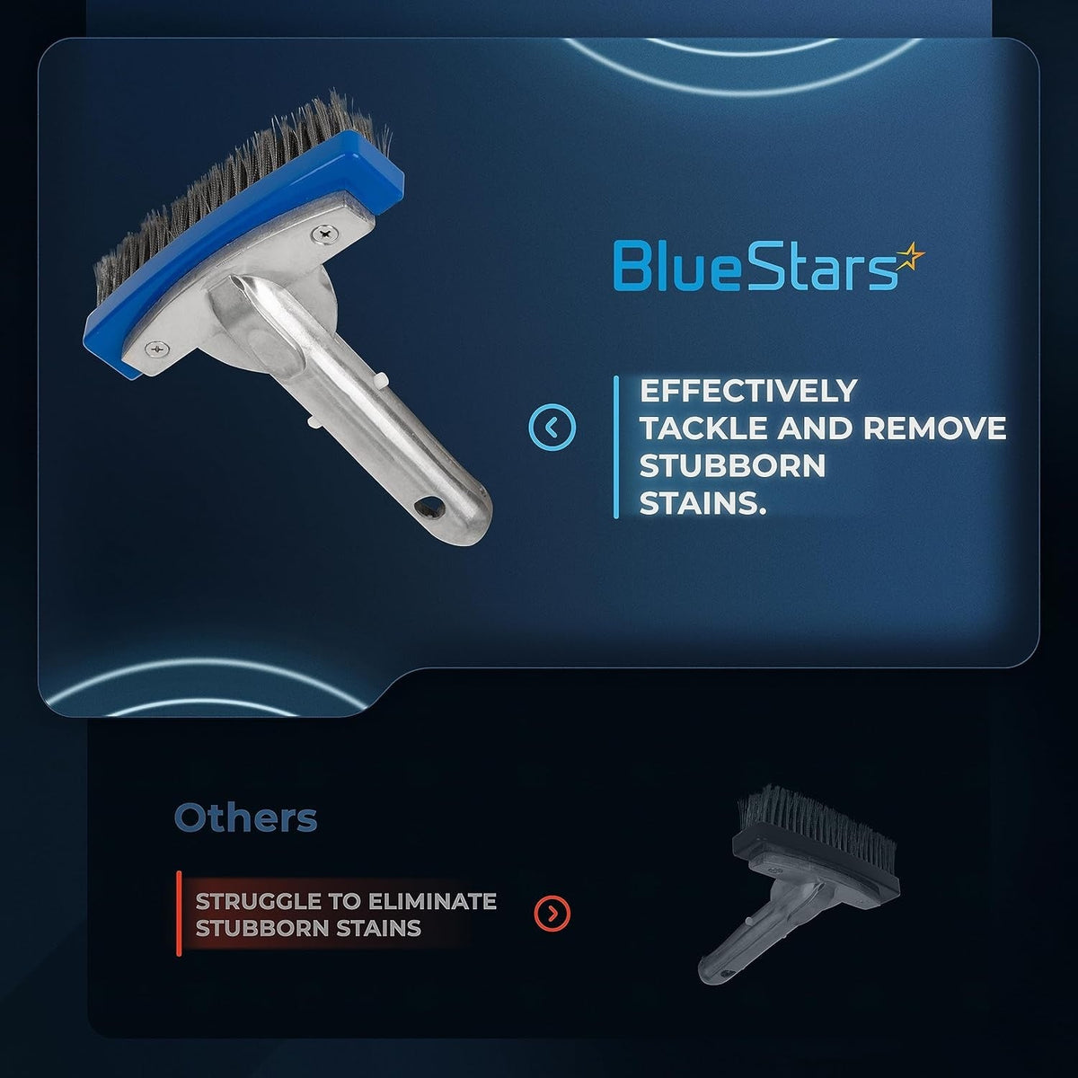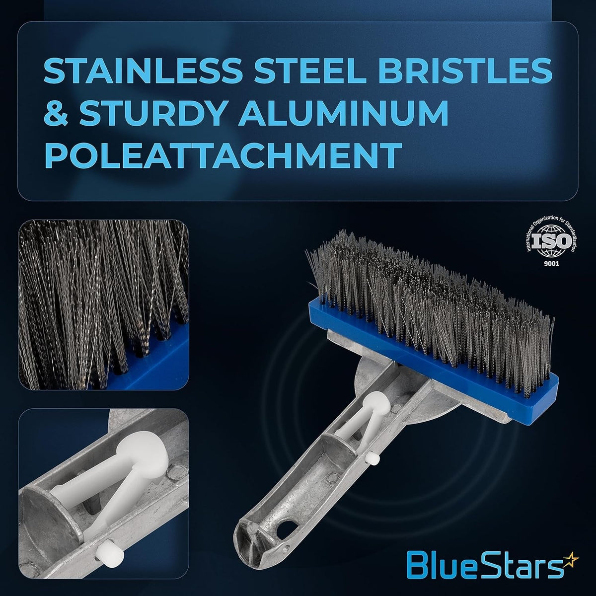 - Durable stainless steel bristles designed for aggressive cleaning of tough algae and stains.