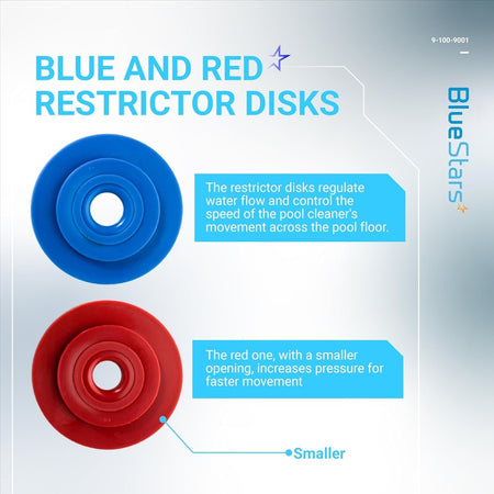 - Select and install the correct restrictor disc (red or blue) based on the requirements of your specific pool cleaner model.