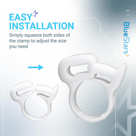 - Squeeze the clamp's tabs, slide it over the connection point, and release to secure the hose.
