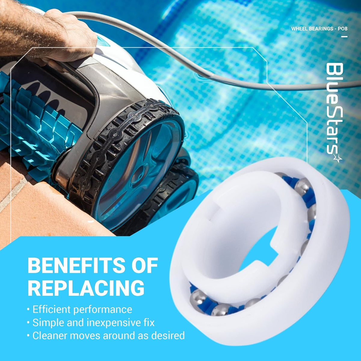 - Enables smooth, free rotation of pool cleaner wheels.