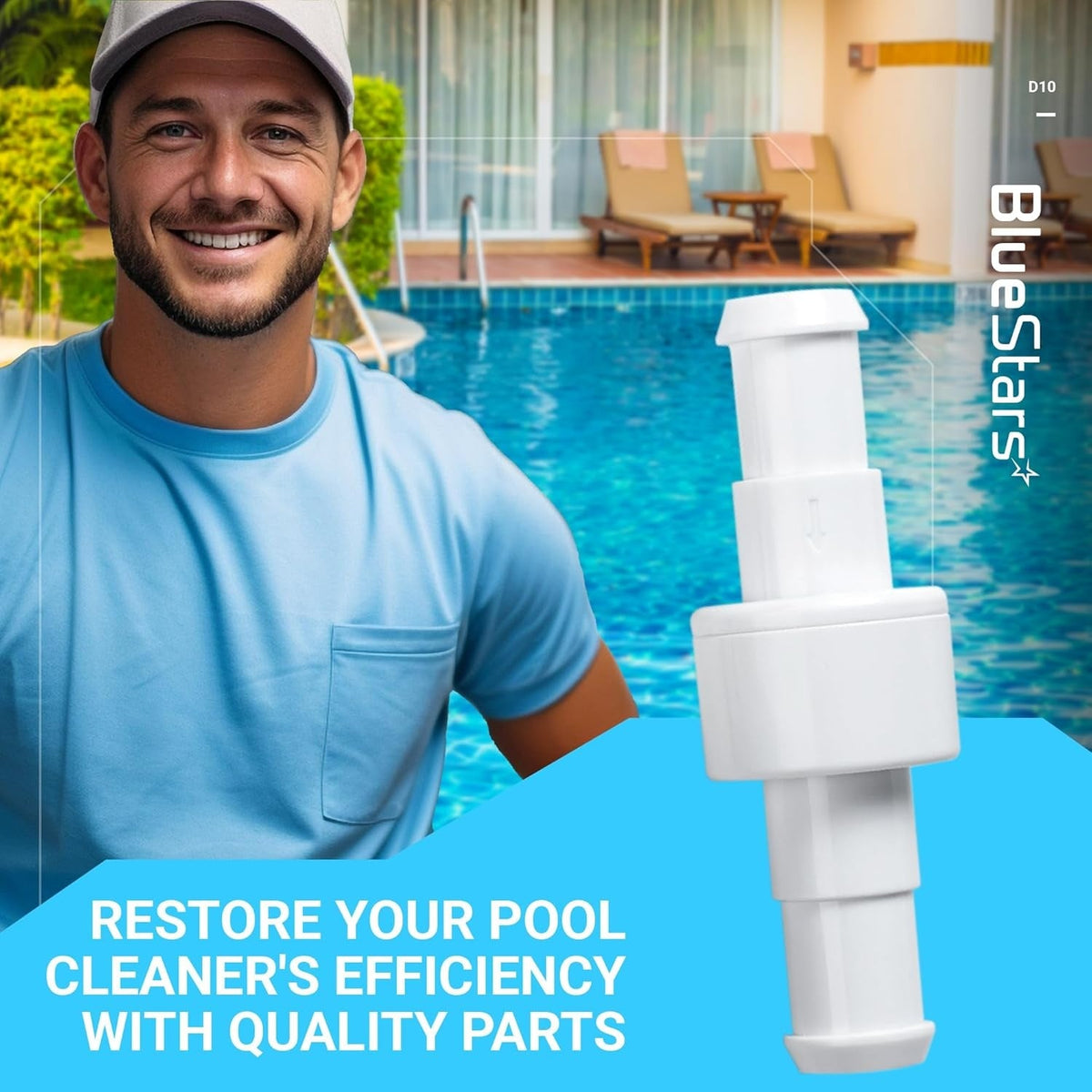- Connects sections of the pool cleaner's feed hose.
