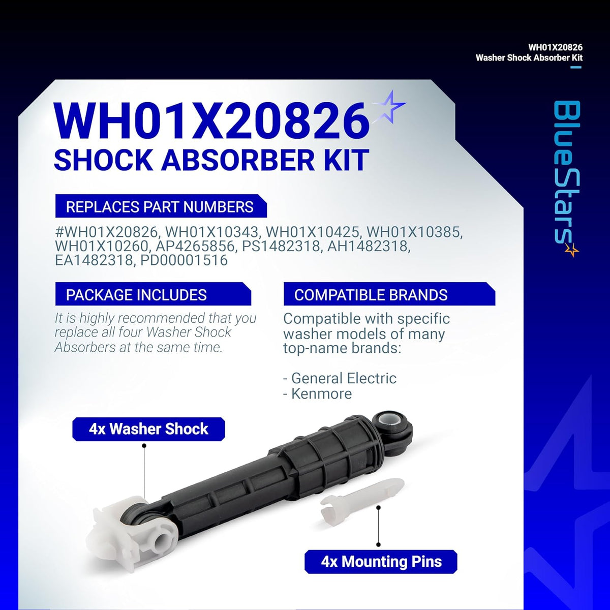 It is highly recommended to replace all four Washer Shock Absorbers simultaneously, as they tend to wear out at the same time.