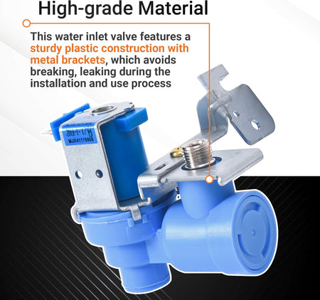 - Controls water flow to the refrigerator's ice maker and water dispenser.
