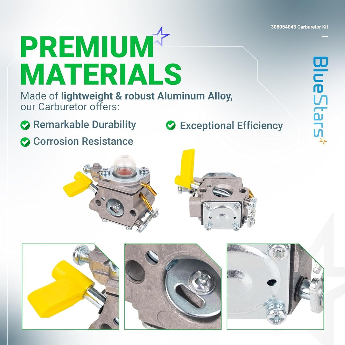 This listing offers a complete carburetor rebuild kit (part number 308054043) specifically designed for a range of Ryobi 25cc, 26cc, and 30cc string trimmers and brushcutters. This kit ensures a precise fit and optimal performance, revitalizing your outdoor power equipment.