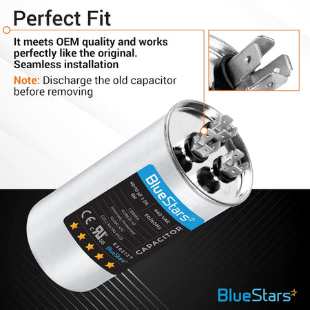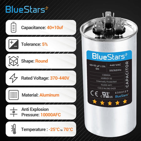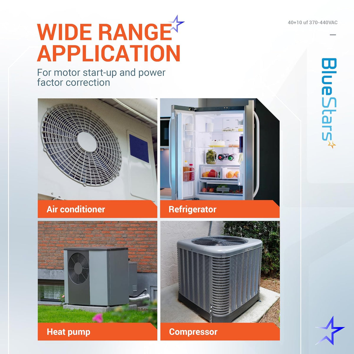 - Specifications: 40+10 uf, 370-440VAC, ±5% Volts