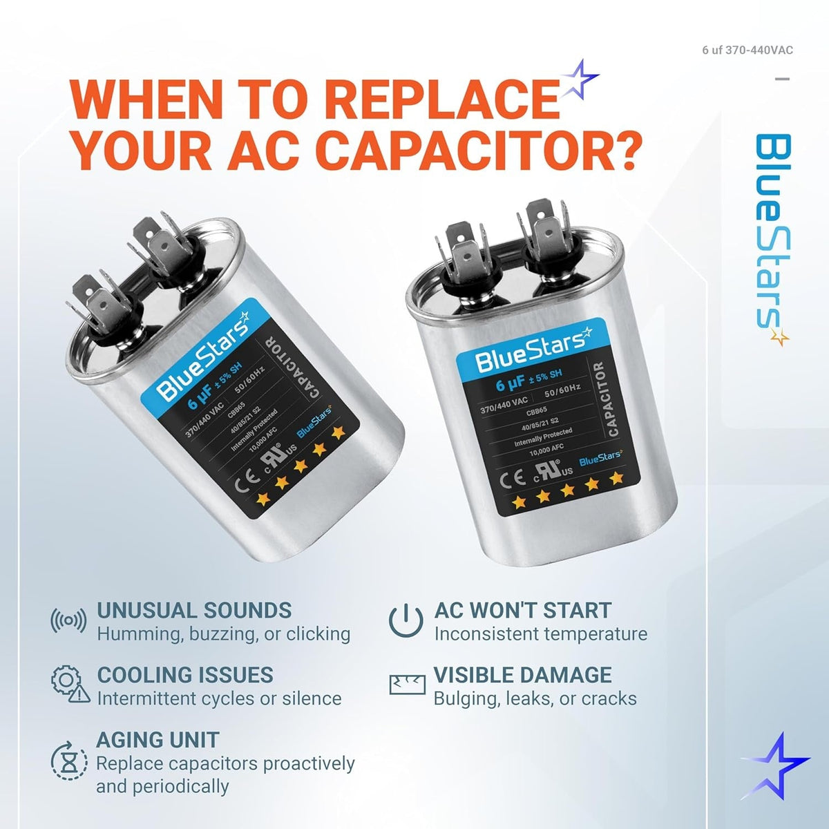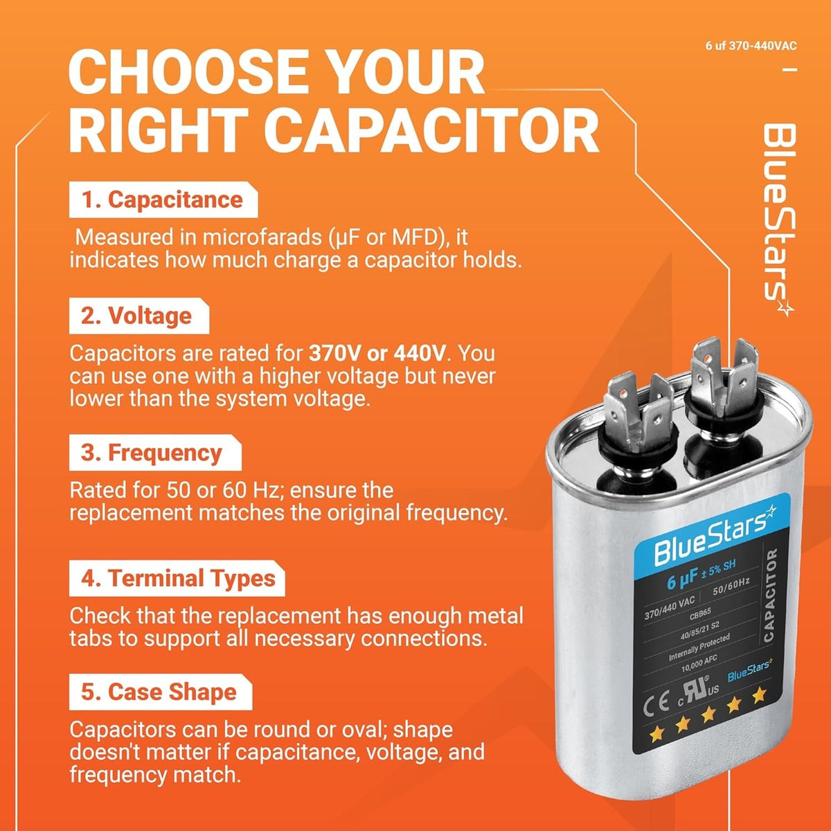 6uF mfd ±5% 370-440VAC Oval Run Start