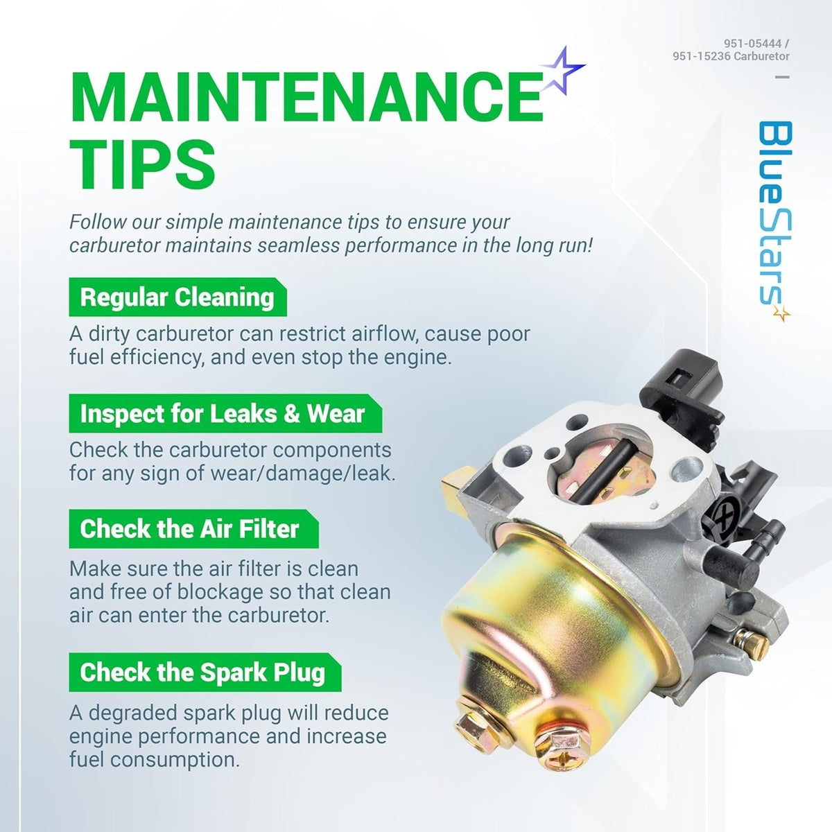- Regulates the air and fuel mixture for engine combustion