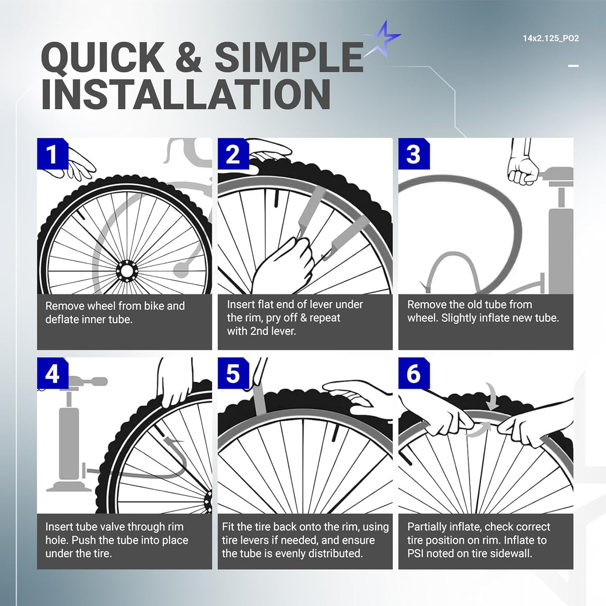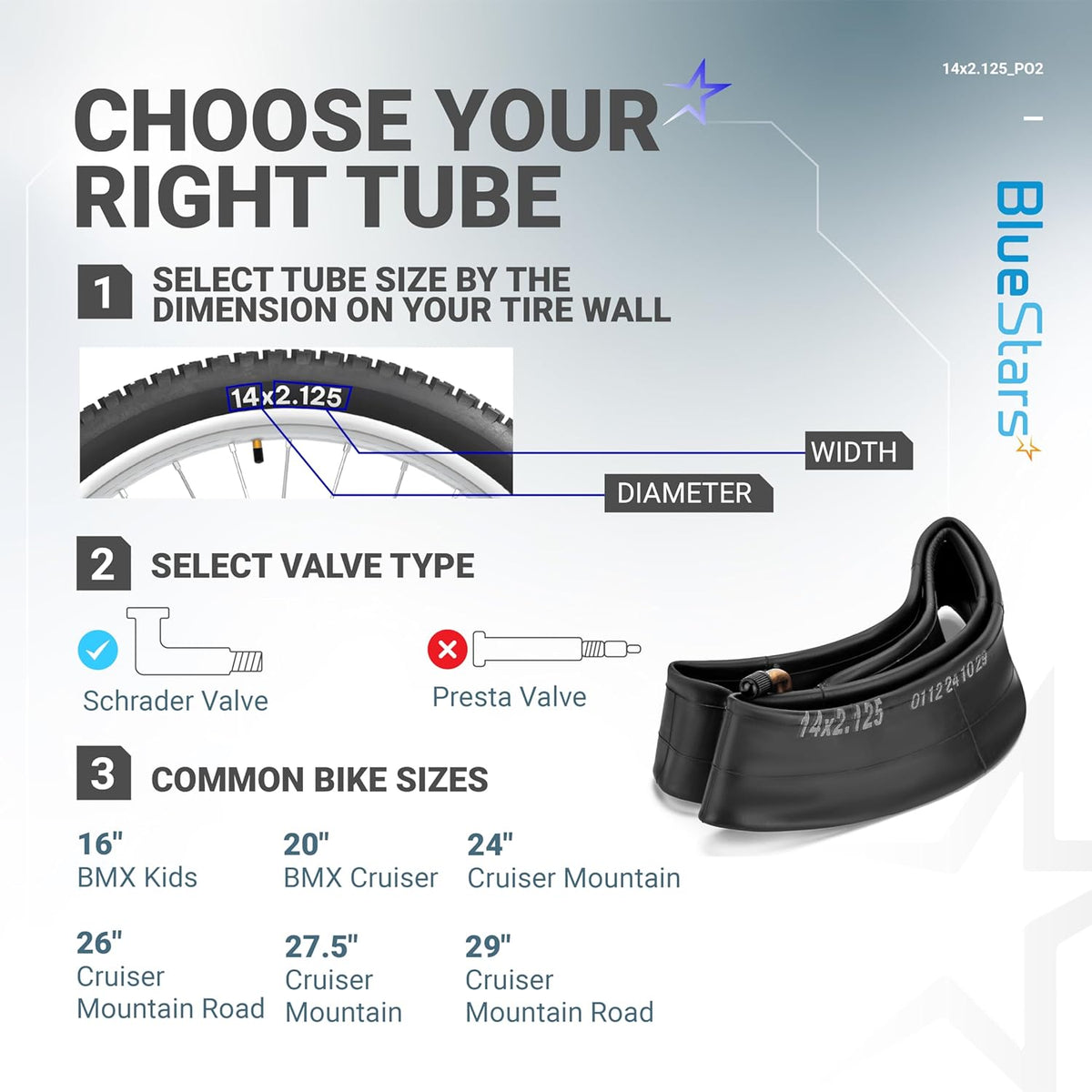 2 Packs Heavy-Duty 14x2.125 Bike Inner Tubes with Angled Valve Stem
