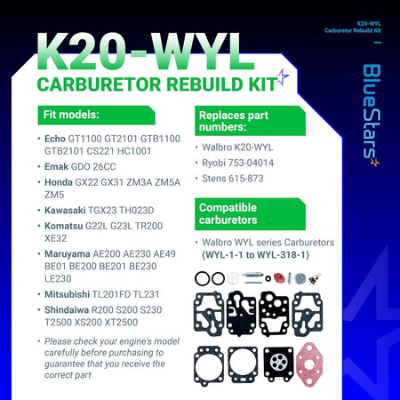 K20-WYL Carburetor Rebuild Kit with Primer Bulb