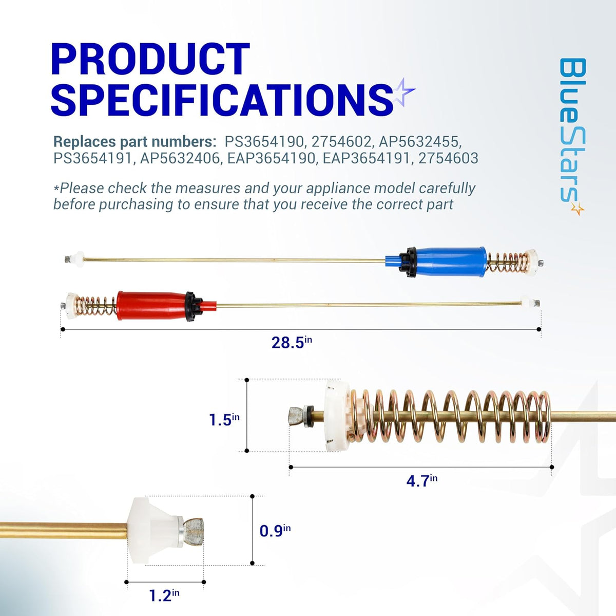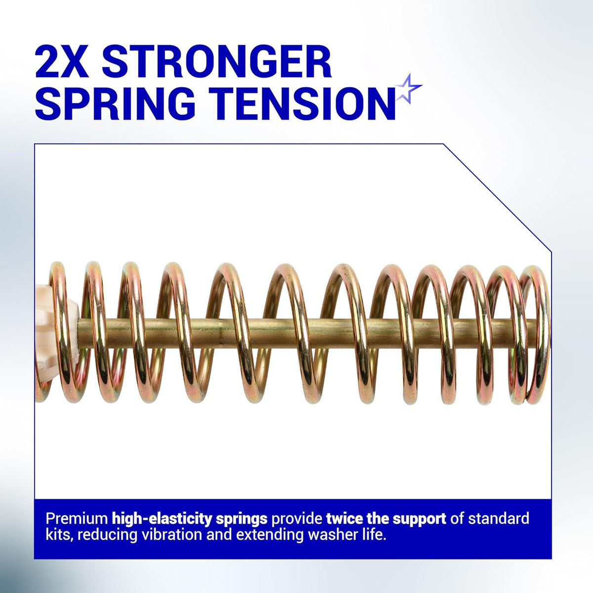 Each suspension rod is constructed from premium reinforced steel with an advanced anti-corrosion coating for long-lasting durability. High-elasticity shock-absorbing springs, heavy-duty rubber rings, and precision metal washers work together to stabilize the drum, prevent metal-to-metal contact, and ensure quiet, reliable washer operation.