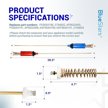 [Lifetime Warranty] WH16X10158 & WH16X10159 Washer Suspension Rod Set - Pack of 4
