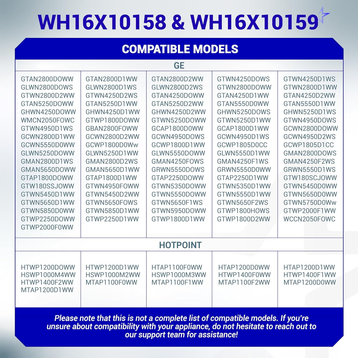Compatible GE & Hotpoint washer models include (partial list):
