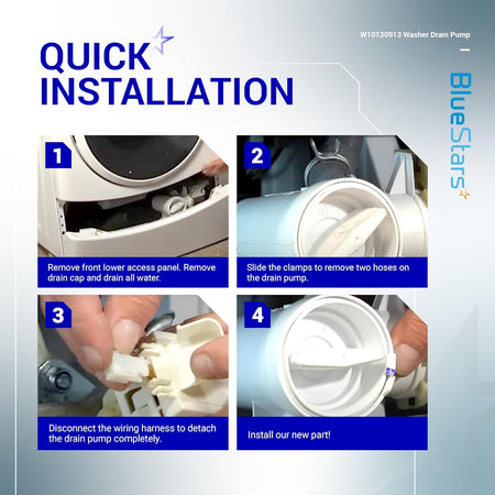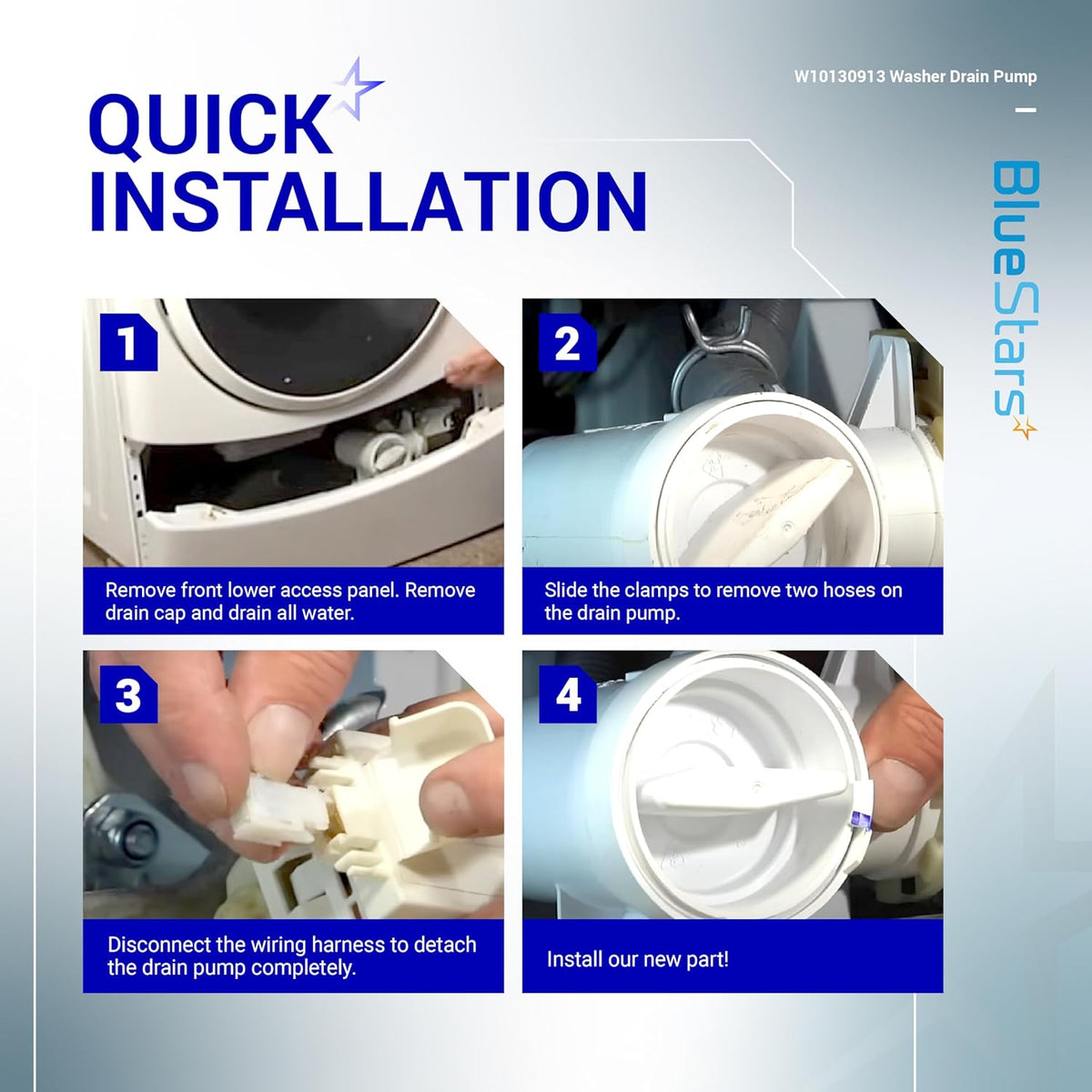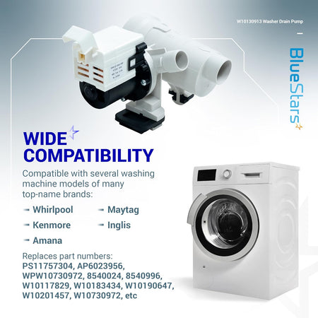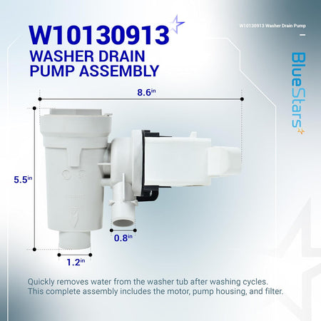 Upgrade your washing machine's performance with the W10130913 Washer Drain Pump, the versatile and reliable solution for all your laundry needs.