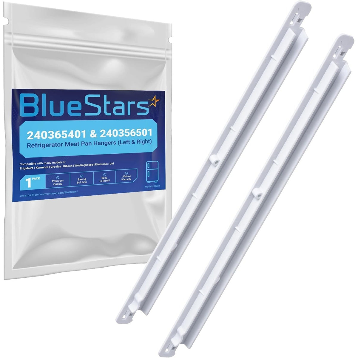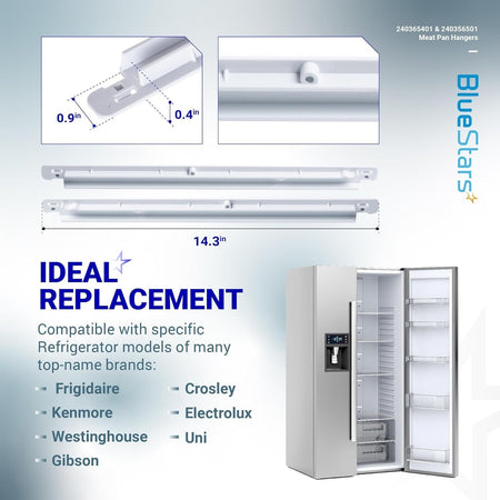 This listing includes a pair of genuine replacement meat pan hangers for Frigidaire and Kenmore refrigerators. Designed for durability and reliability, these hangers are essential for maintaining the functionality of your refrigerator's meat pan.