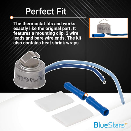 Upgrade your refrigerator's performance with the 5303918202 Refrigerator Defrost Thermostat Replacement Part. This essential component is compatible with Frigidaire and Kenmore refrigerators, ensuring a perfect fit and reliable operation.