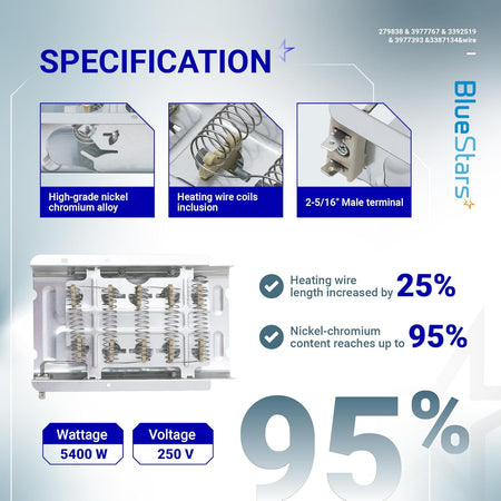- High-quality heating element designed to restore proper drying function