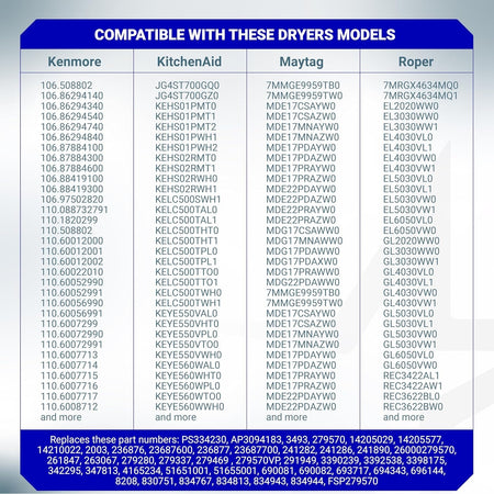 • Compatible with many models from Whirlpool, Maytag, Kenmore, Amana, Roper, and Admiral.