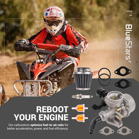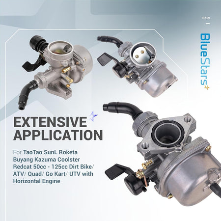This listing is for a PZ19 Carburetor Repair Kit compatible with a wide range of 50cc-125cc horizontal engine ATVs, Go Karts, and Dirt Bikes. Specifically designed for TaoTao, SunL, Kazuma, Baja, and Roketa branded vehicles, this comprehensive kit ensures a smooth and efficient engine operation.