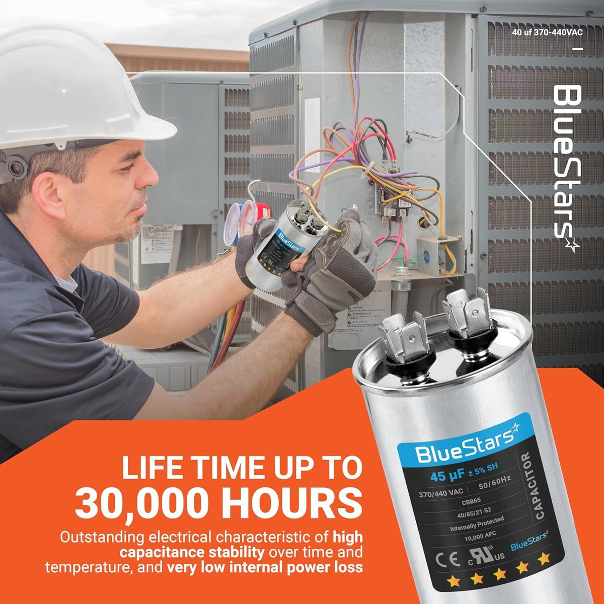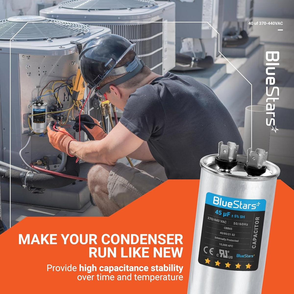 45 µF/MFD 370-440VAC Round Run Capacitor with Blue Stars
