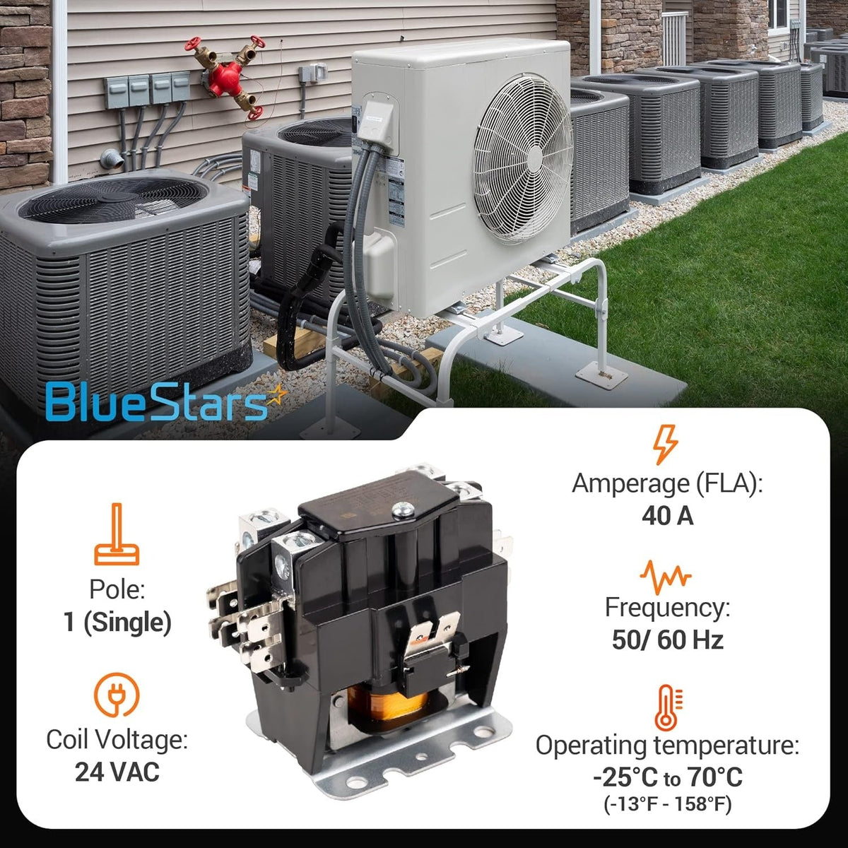 - Serves as a universal replacement for most residential single-pole definite purpose contactors with matching electrical specifications.