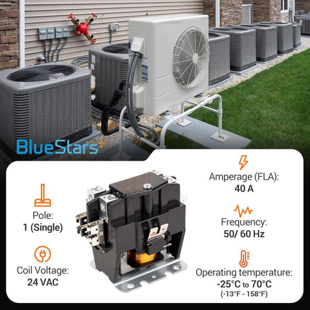- Direct replacement for any 1-pole contactor rated at 40 amps or less (e.g., 25A, 30A) with a 24 VAC coil.