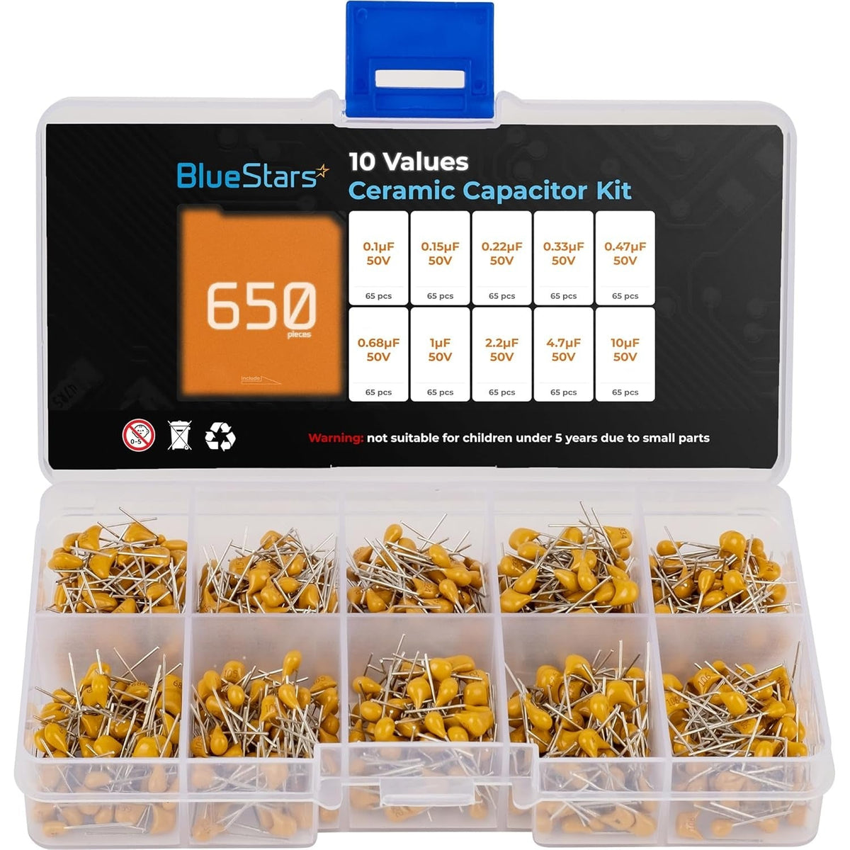 10-Value Ceramic Capacitor Assortment Kit 650 pcs