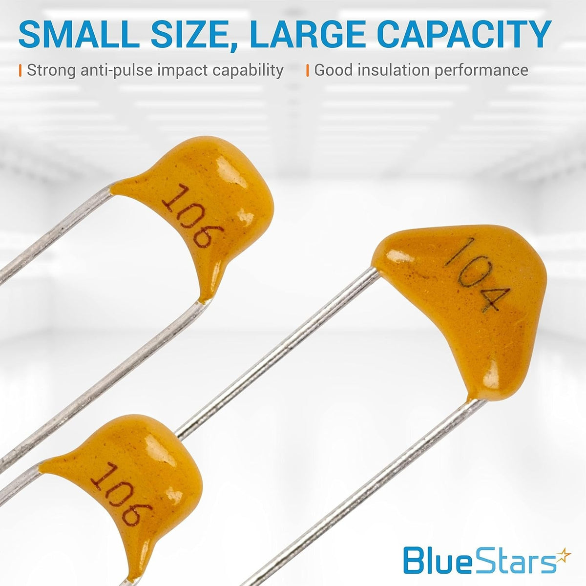 - These ceramic capacitors are non-polarized and can be installed in any orientation.