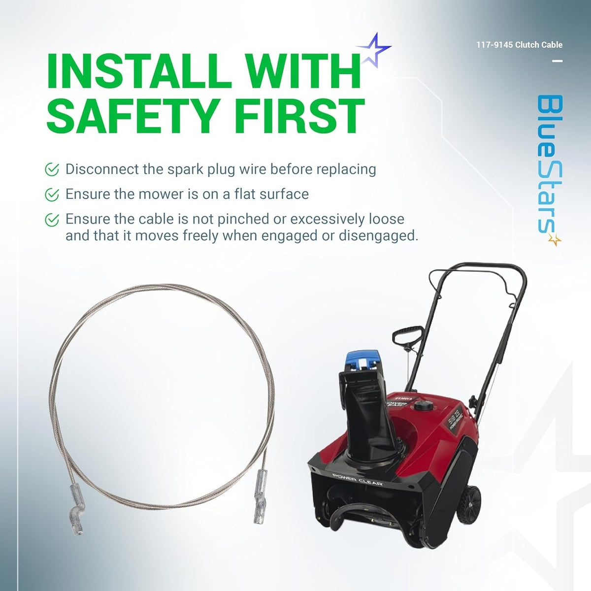 This Clutch Drive Cable replaces part numbers 117-9145 and 1179145. It is compatible with the following Toro models: