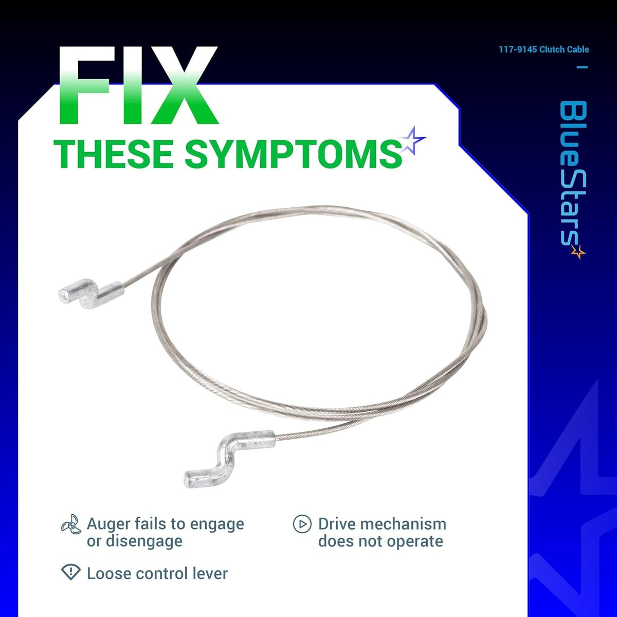 Constructed with a PVC casing, the 117-9145 Clutch Drive Cable offers enhanced protection, durability, and flexibility. It is designed to withstand twisting, pulling, and tangling, made from premium quality materials to resist stretching, breaking, or snapping under stress.