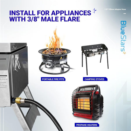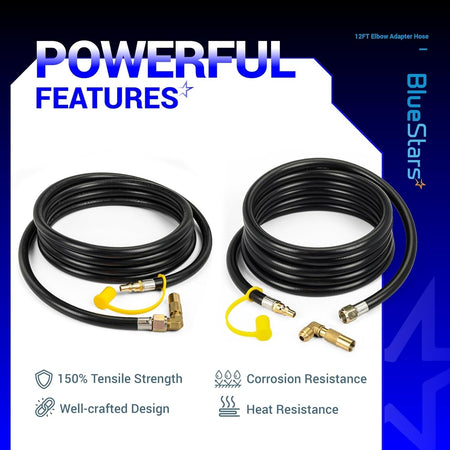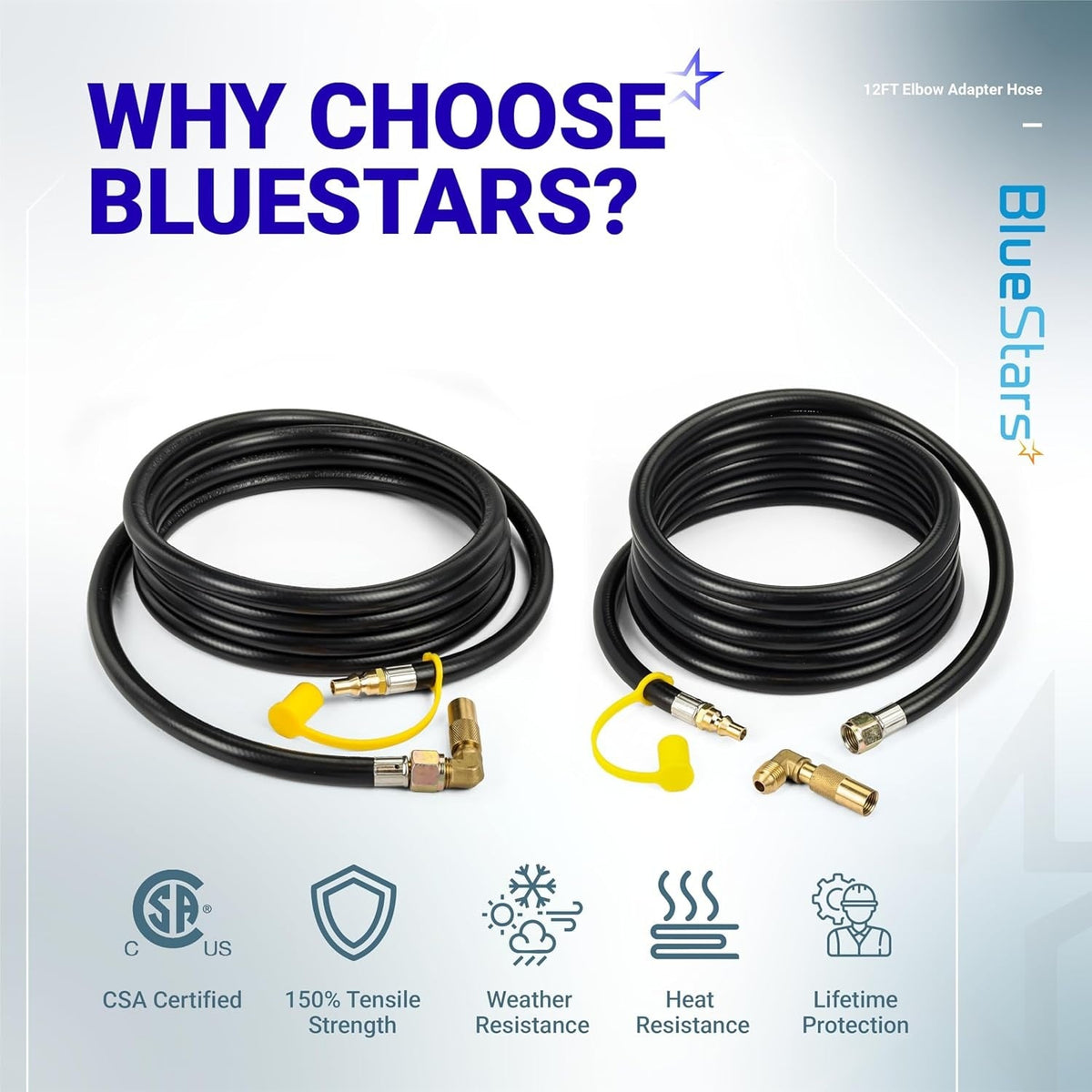 12FT RV Quick Connect Propane Hose with Elbow Adapter For RV to Grill – Low Pressure Quick Connect Hose For 17" & 22" Blackstone Grills/Griddles
