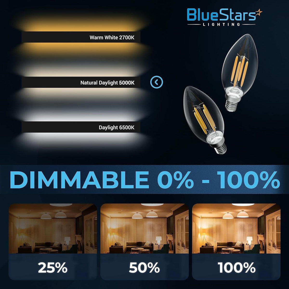 BlueStars B10 E12 LED Light Bulb is great for Chandeliers, Ceiling Fans, Wall Sconces, Pendant Lights, Foyer Lights, etc.