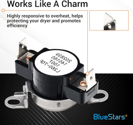 - One (1) Dryer Thermal Limiter: This crucial safety device shuts off the dryer's heating element if it reaches dangerously high temperatures, preventing fire hazards. This specific limiter is compatible with numerous Frigidaire and Kenmore models, effectively replacing part numbers 137032600 and 134120900, ensuring continued safe operation of your dryer.