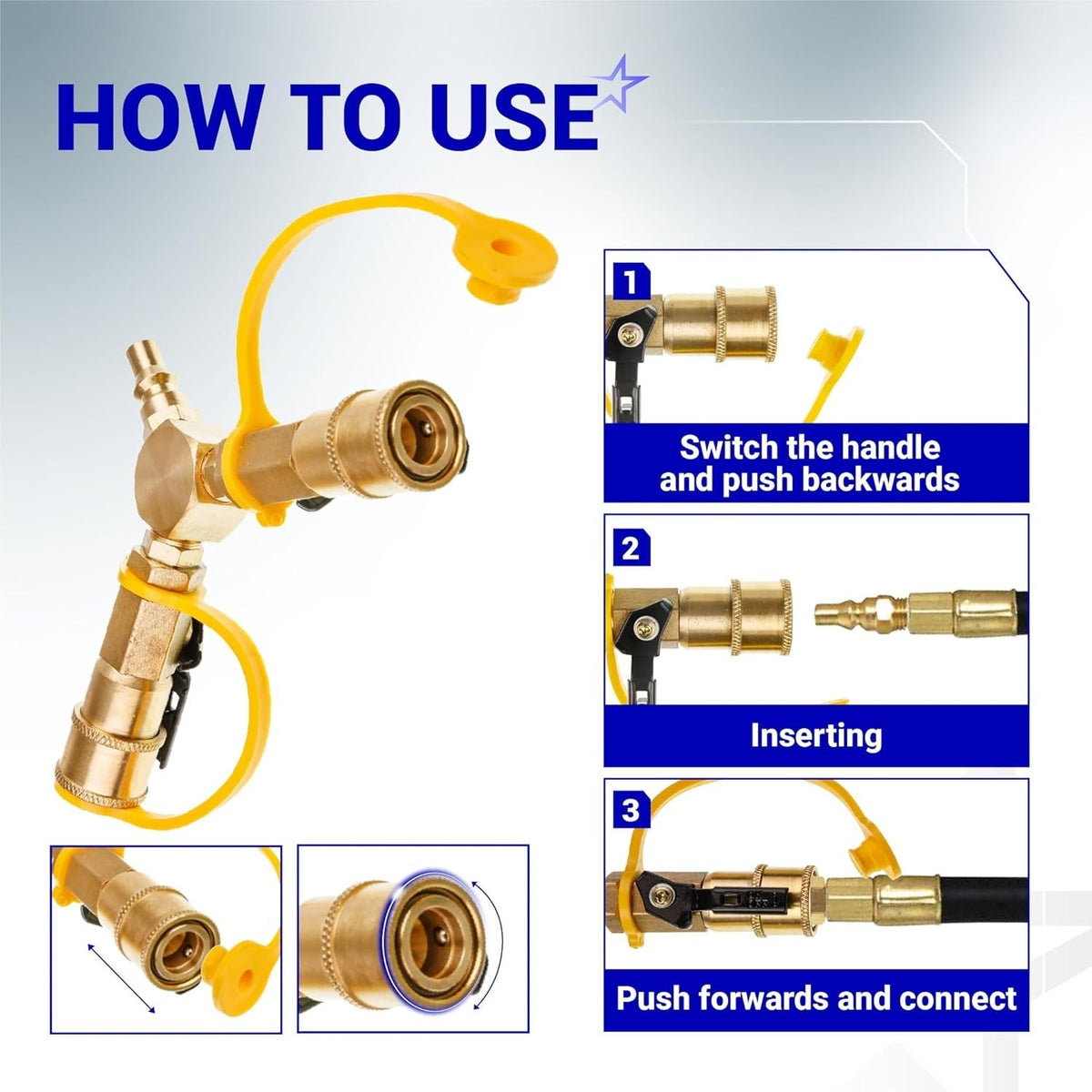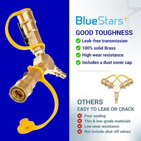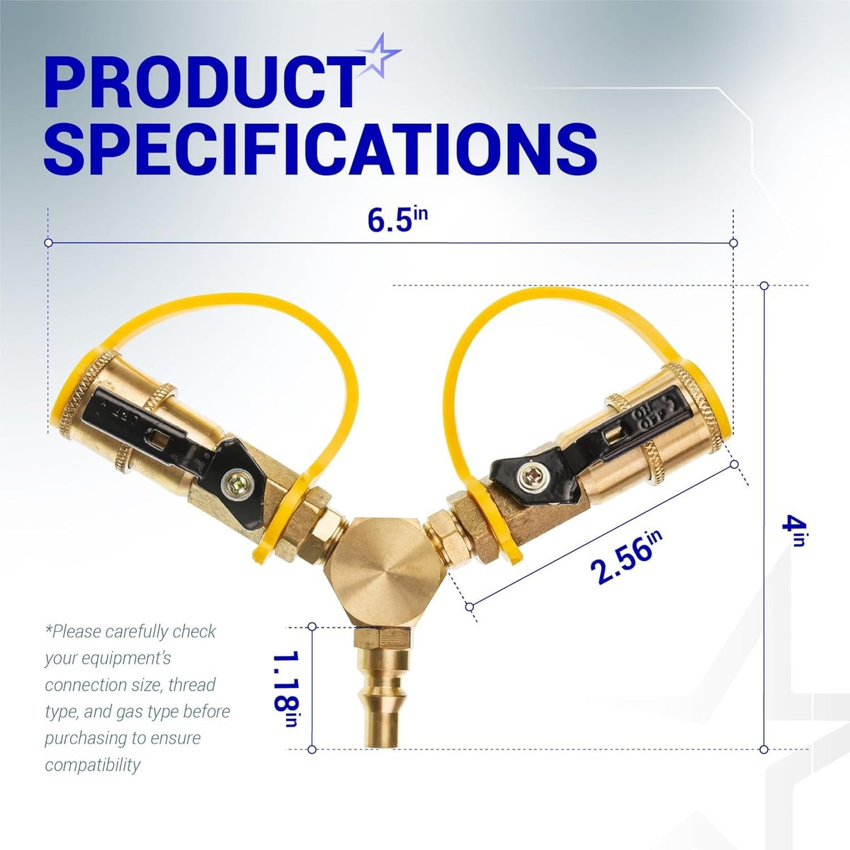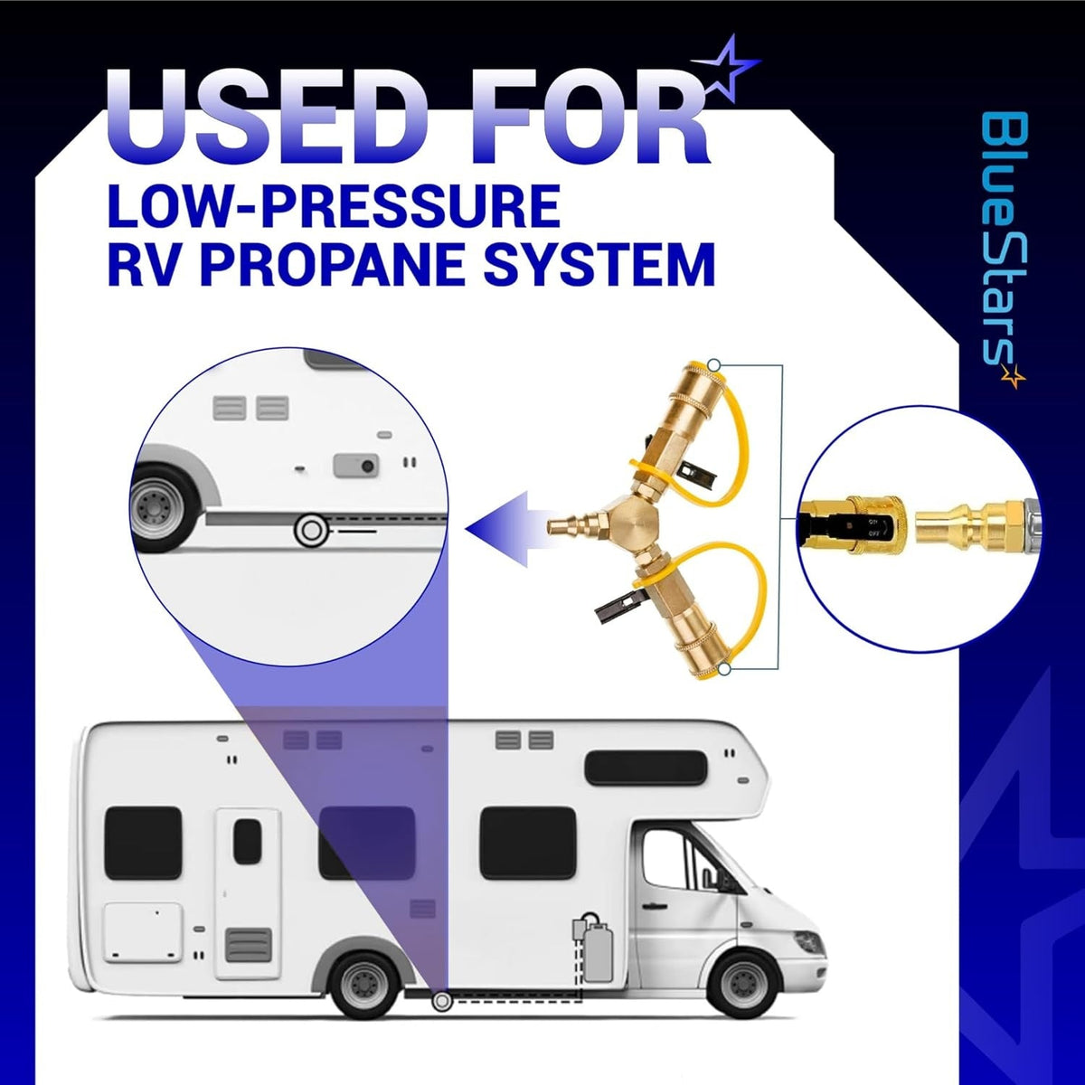 1/4" RV Propane Quick Connect Y Splitter Adapter with Shutoff Valve