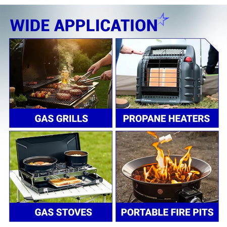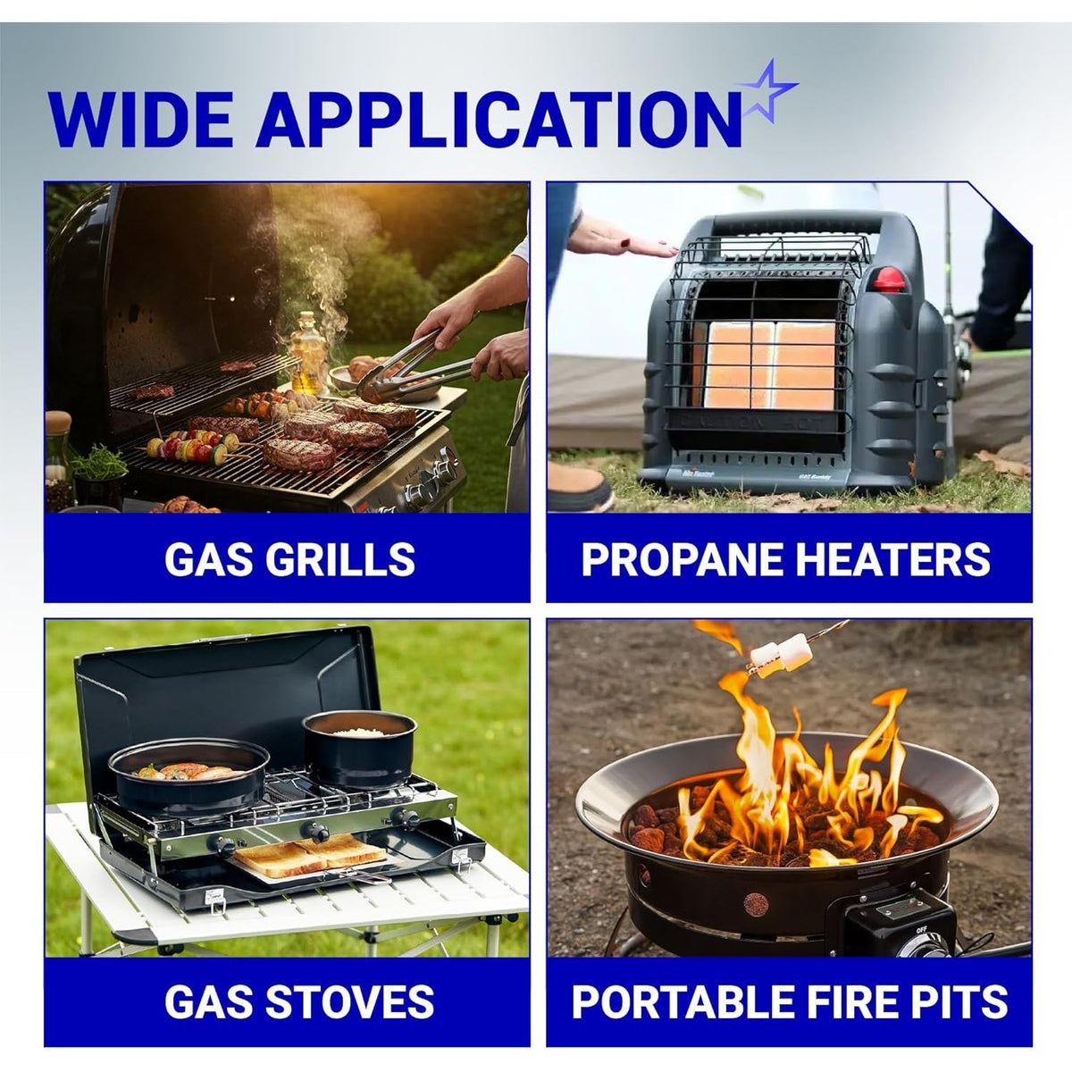 - Compatible with appliances equipped with a 1/4-inch male quick-connect plug, including portable grills, camp stoves, fire pits, and heaters.