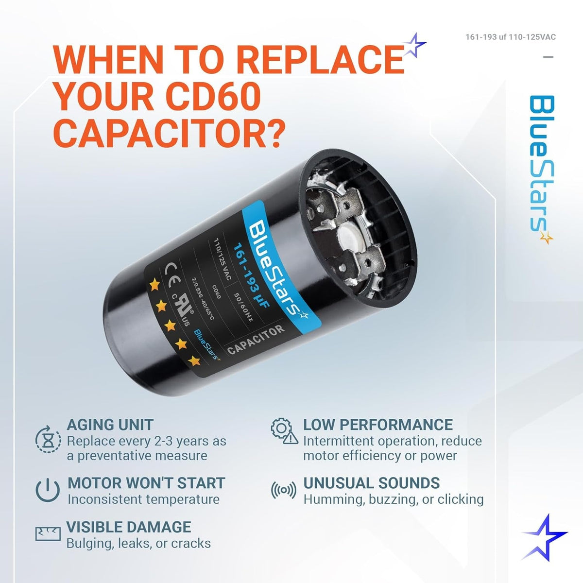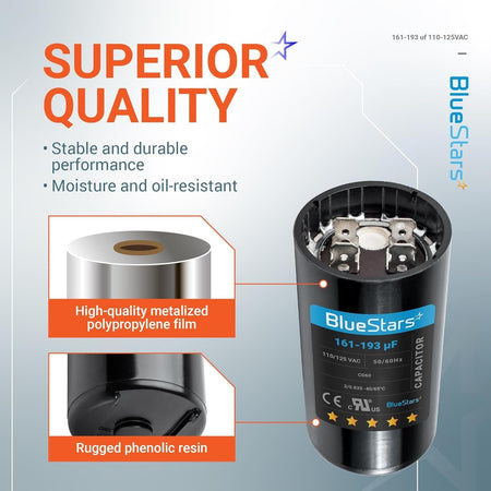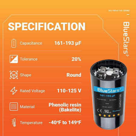 • Capacitance Range: 161-193 microfarads (MFD) - suitable for a variety of applications.