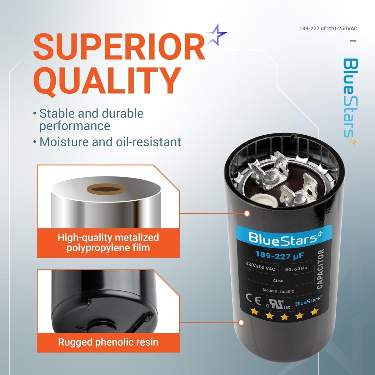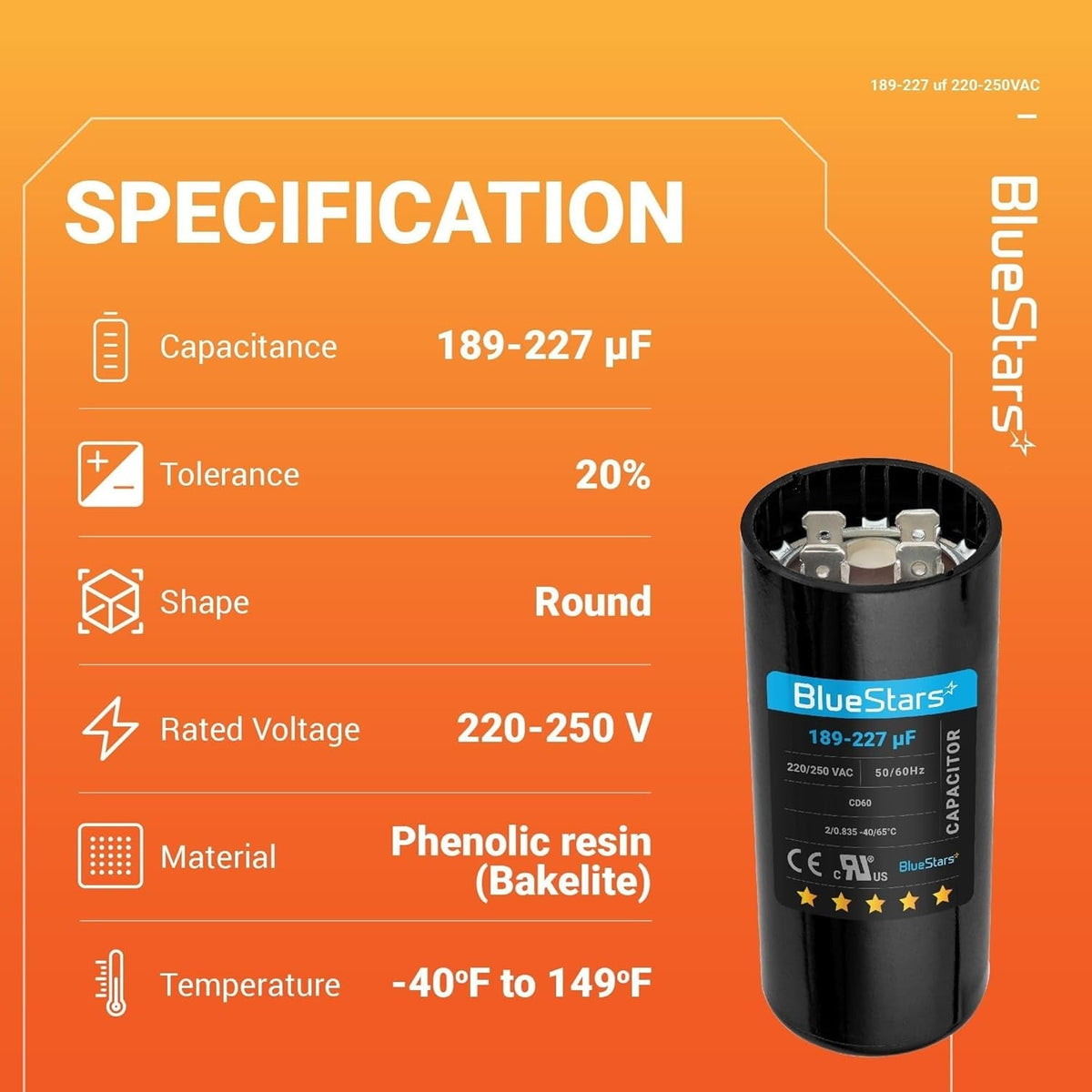 189-227 uf/MFD 220-250 VAC Volts Round Start Capacitor 50/60 Hz AC Electric