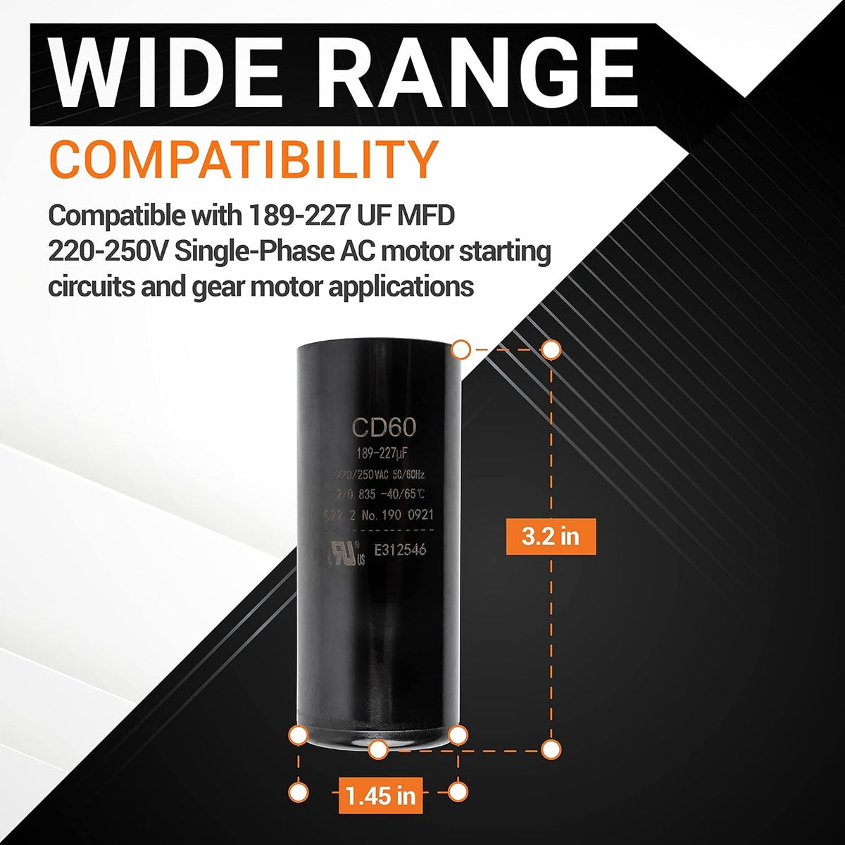 189-227 uf/MFD 220-250 VAC Volts Round Start Capacitor 50/60 Hz AC Electric