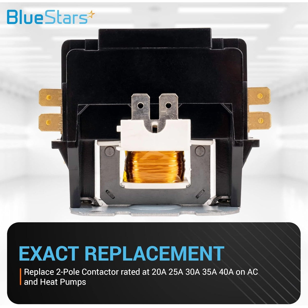 - Fits as a universal replacement for most residential and commercial definite purpose contactor applications requiring a 2-pole, 40 Amp, 120VAC coil configuration.