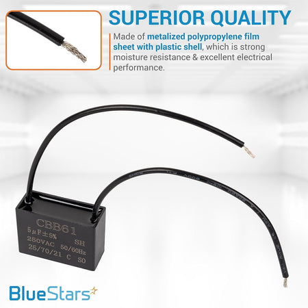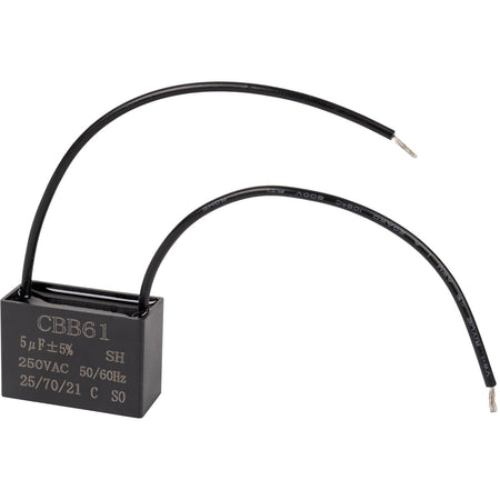 - Replaces any 2-wire CBB61 capacitor with matching 5uF capacitance and a voltage rating of 250V AC or lower.