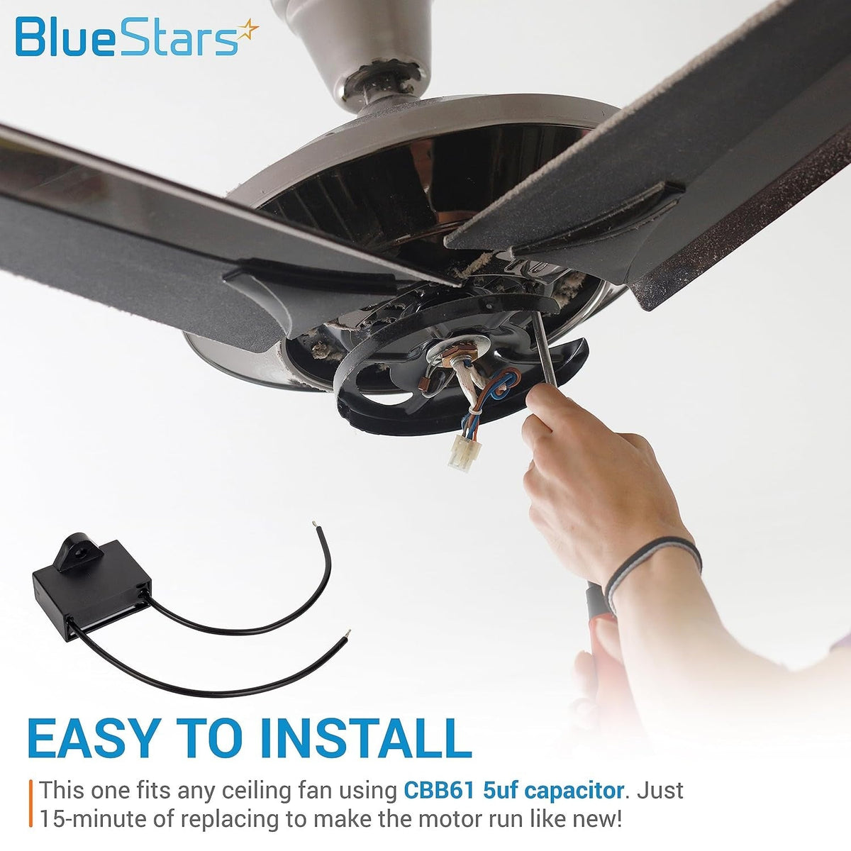 - Designed for ceiling fans and other small motor applications requiring a 2-wire start/run capacitor.