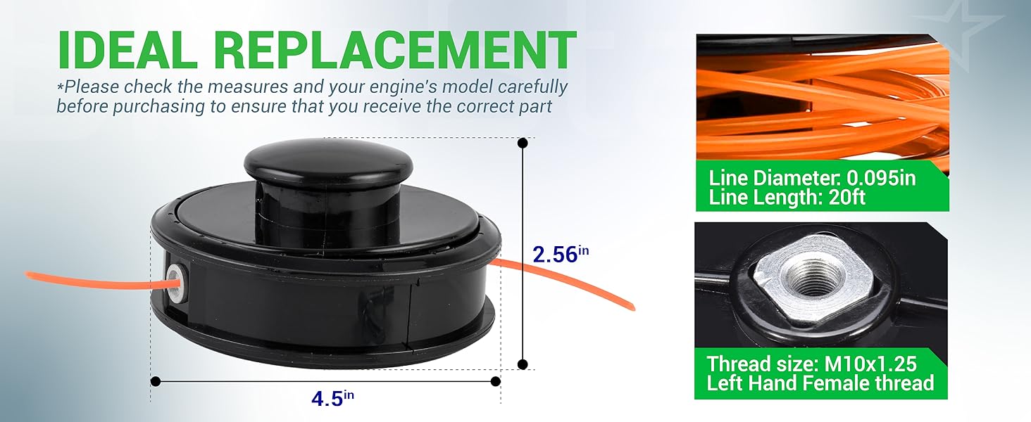 - Utilizes 0.095" (2.4mm) diameter trimmer line (sold separately)