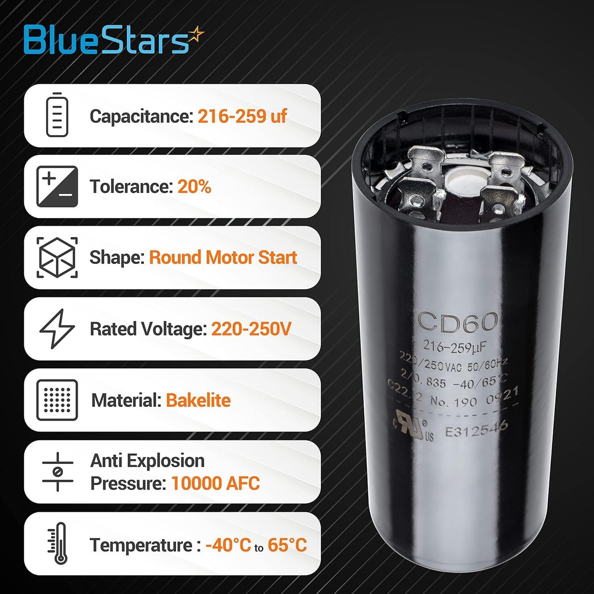 216-259 uf MFD 220-250 VAC 50/60 Hz SC0080 CD60 Round Motor Start Capacitor